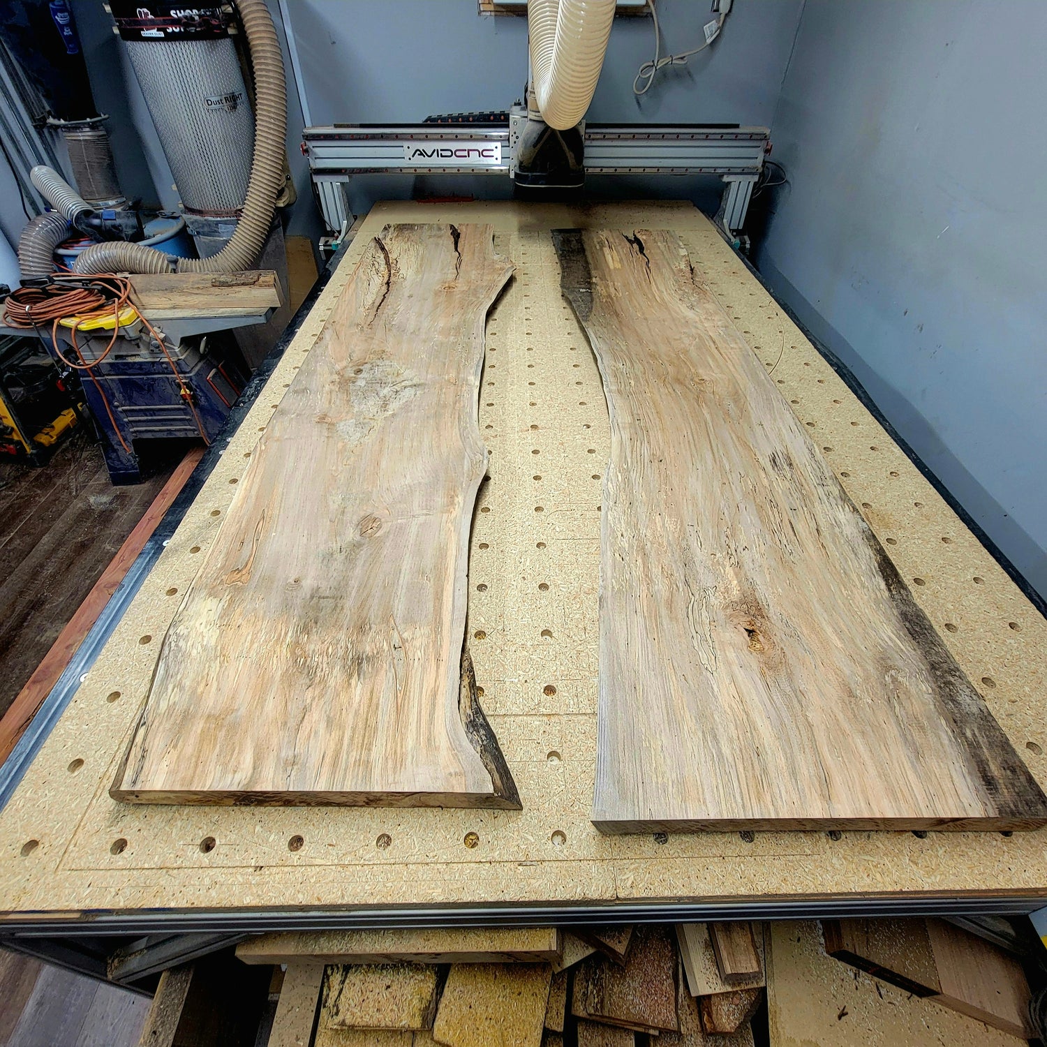 We love blending the artistry of traditional woodworking with new age technology. Our most recent upgrade (2022) has been incorporating a 5' x 8' Avid CNC table using precision Amana Tool end mills. The precision of our CNC table allows us to create various designs with absolute repeatability. This also gives us the capability to offer slab flattening, 3D artwork and large material processing efficiently.